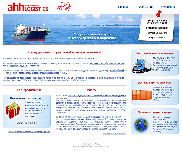 Сайт логистической компании «ahh logistics»